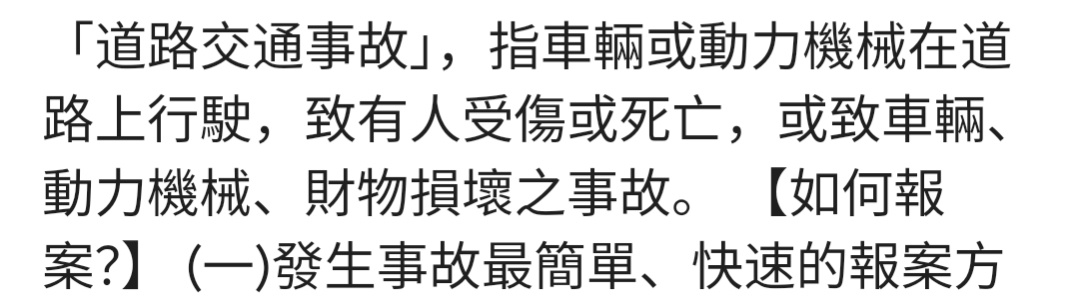 → kikielle : 條例92條第5項就有說交通事故了 道223.139.204.208 08/25 04:27