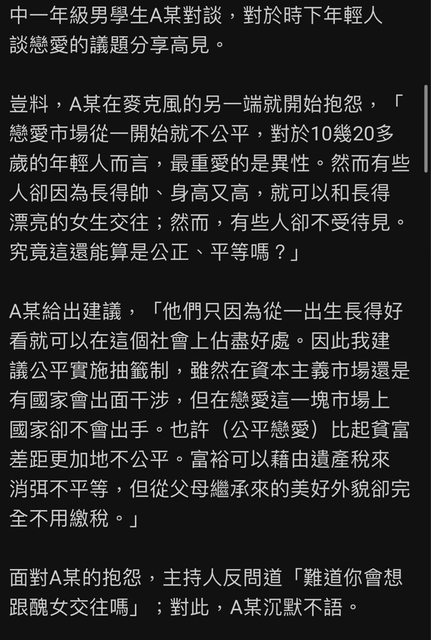 以前韓國就有仇女魯蛇上節目 說社會不公
