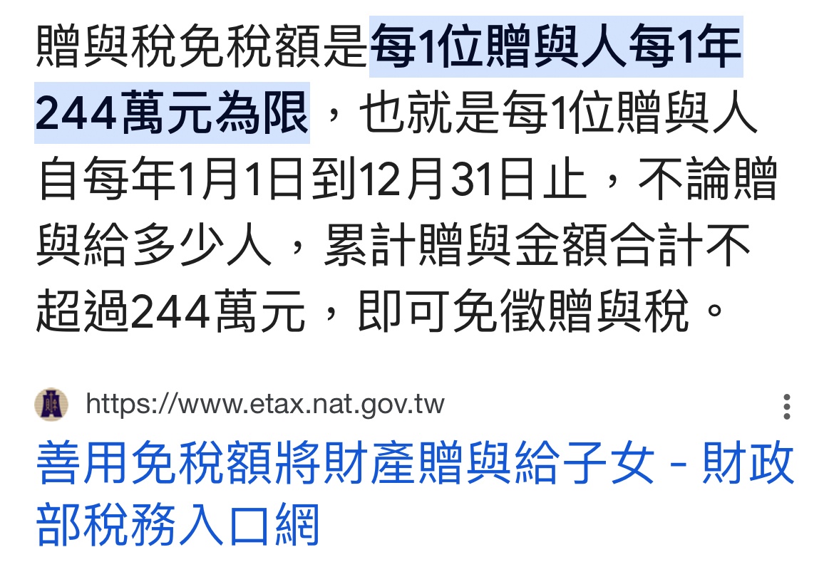 → watermore : 有sense的父母本來就會透過每年贈與114.25.175.105 09/15 13:53