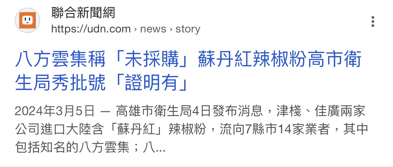 → dong531 : 上次蘇丹紅事件就看透了 223.140.74.132 09/27 08:55