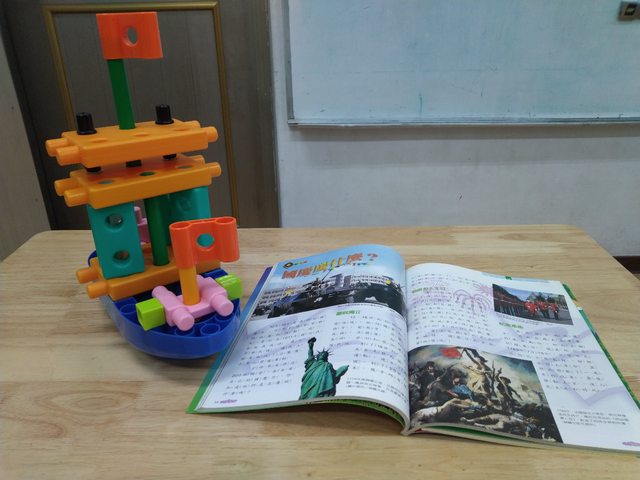 這週一才帶積木課小朋友組裝的國慶日積木造型,是讓小朋友組裝軍艦,當時在設計時煩