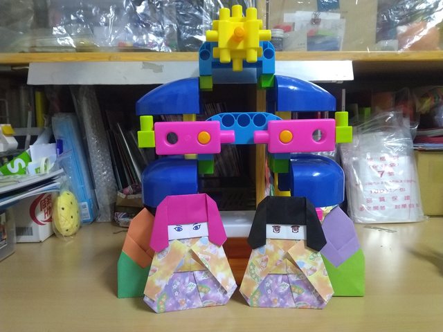 折紙相對複雜,我就改成折日本娃娃加上竹筍,來對應竹取公主的傳說故事。