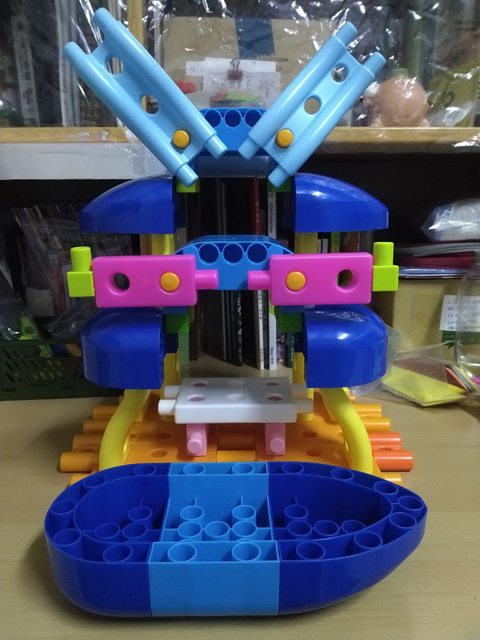 後來搜尋了軍艦,又看到這學期的積木教具有可以當成旗幟般的零件。就來試著組裝看看
