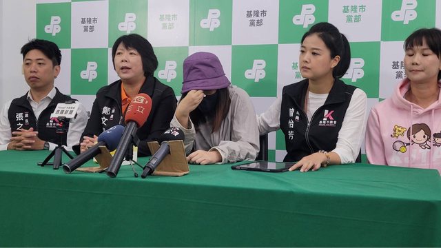 基隆市長謝國樑罷免案13日投票,市議會民進黨團10日陪同一名拆樑女志工召開記者會,