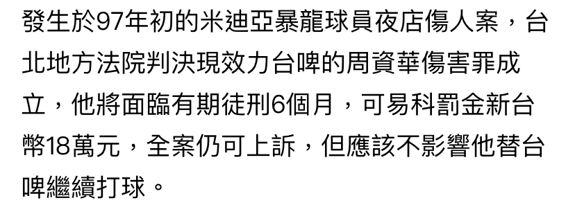推 crawford438 : 中職也是起訴才砍人(不起訴被砍的只有賣麵的?)台 08/04 18:00