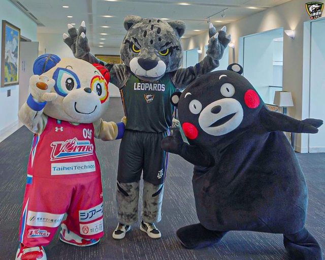 人氣吉祥物「熊本熊」與「豹哥」首度跨海交流,活力十足的熊本熊更突擊球員休息室,