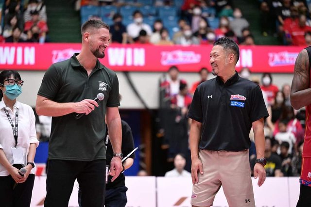賽後歐森教練表示,非常感謝熊本縣及熊本Volters球團熱烈歡迎台啤永豐雲豹,也謝謝G