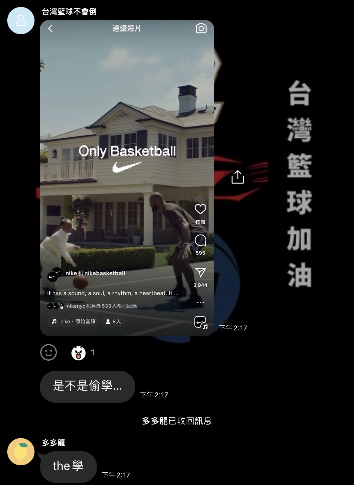 推 a30019123 : 原來是致敬Nike 11/08 15:12