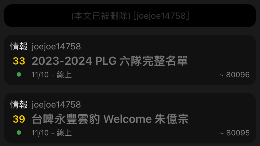 → joejoe14758 : (4)[BOX ]、[Live]兩分類不計入單日發文總數。 11/10 18:52