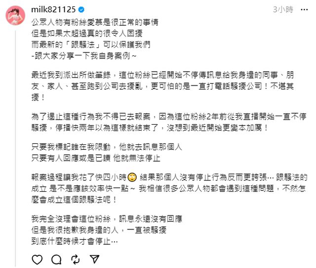 噓 soyjay : 標題黨只會嘴價碼 完全忽視文內講的跟騷行為wwwwww 12/05 09:16