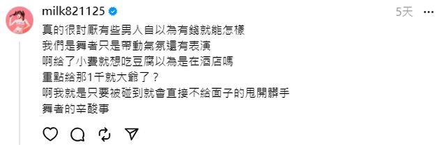 → rossitmax600: 好像有看到在公關店跳舞? 12/05 10:39