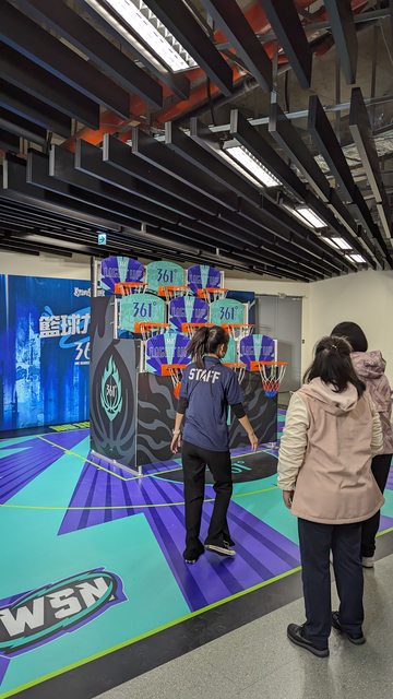 一堆人都在排籃球九宮格,5次機會只要進3球就可以拿一頂還不錯看的老帽