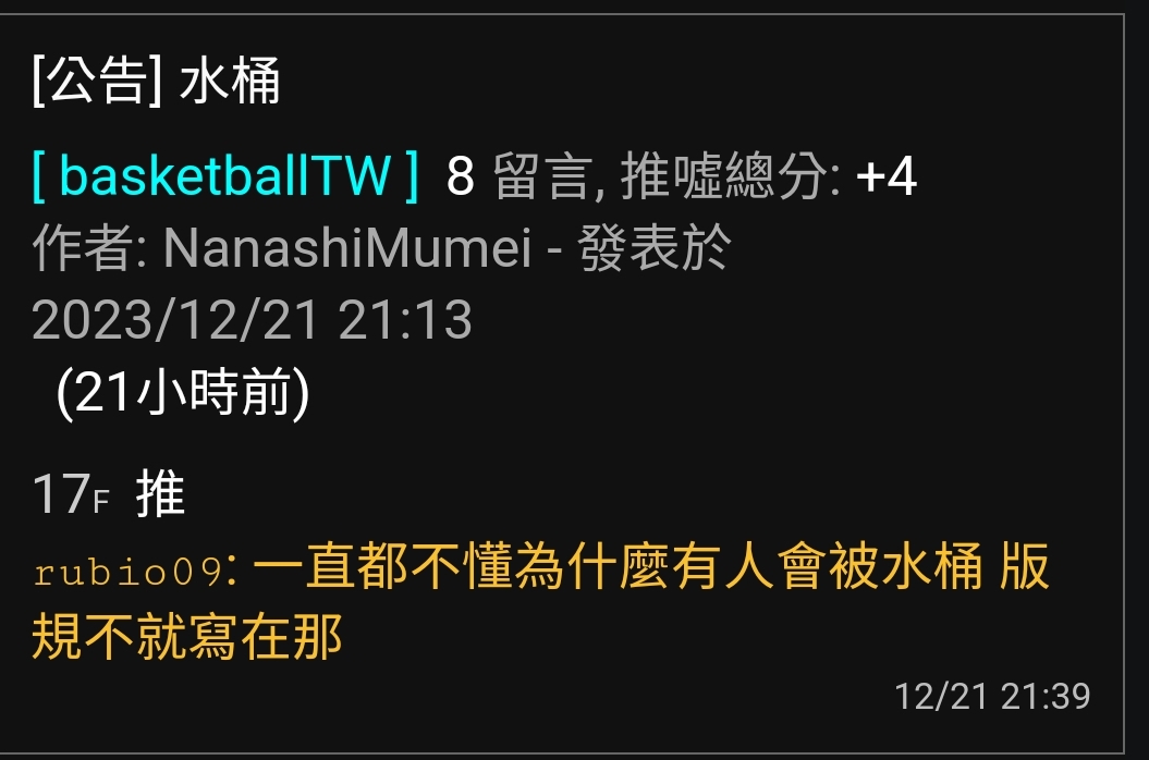 推 j112233446 : 一直都不懂為什麼有些人會被水桶XDDDD 12/30 00:02