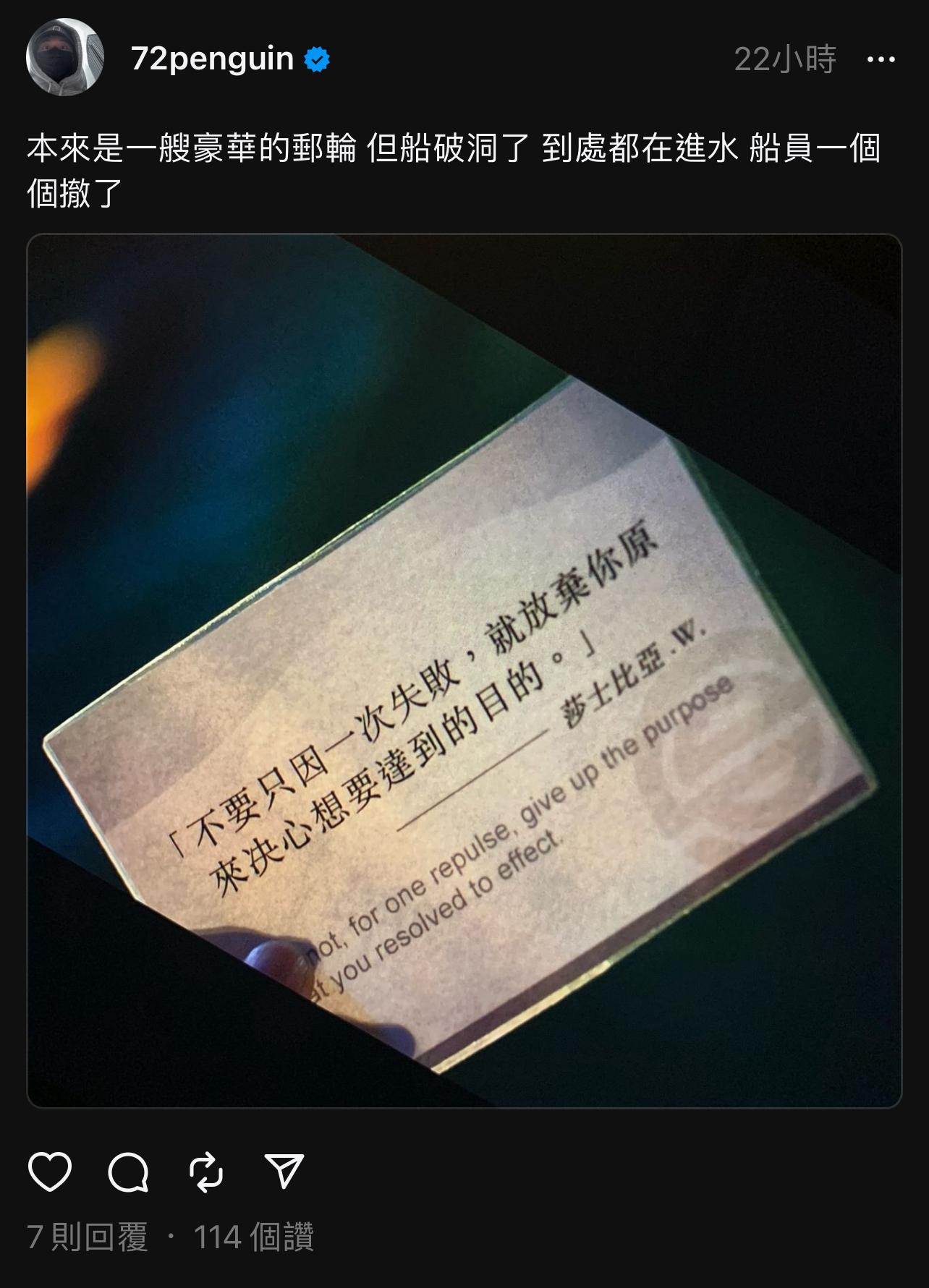→ supahotfire : 牆倒眾人推,連「場館本來就不專業」都拿出來了 01/10 18:08