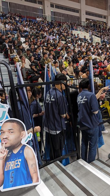 干擾對手罰球搖旗中的阿崔(沒有敲鑼
