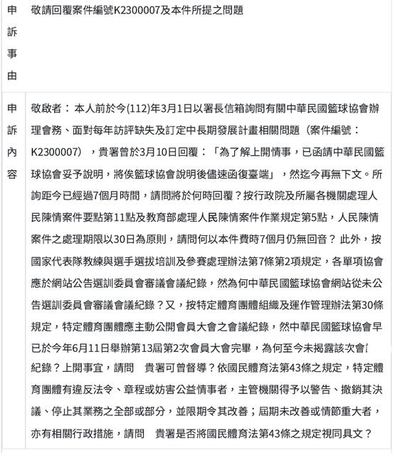 像我之前受不了跟籃協反應無效,寫這內容給體育署: