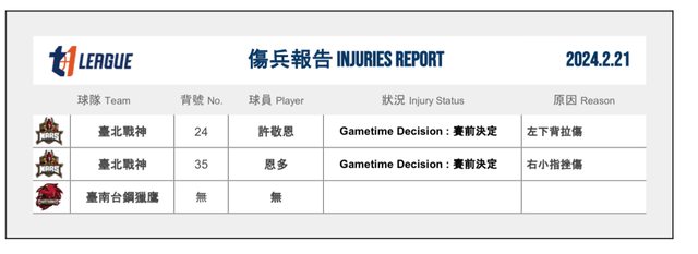 標題[情報] T1 2024.2.21傷兵報告