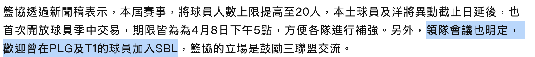 → joejoe14758 : 之前籃協不是說可以季中交易 也歡迎P/T到SBL 03/06 13:24