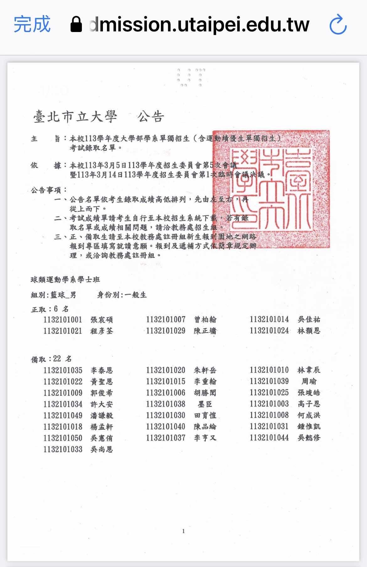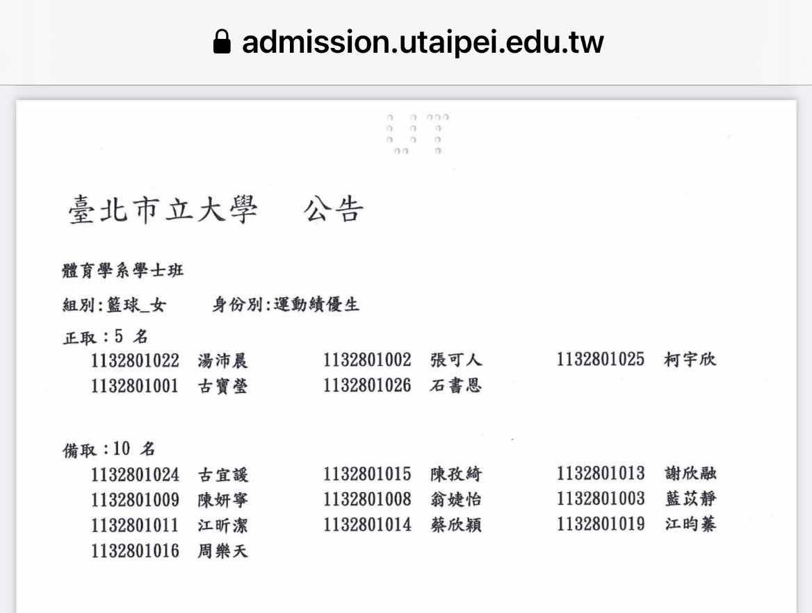 標題Fw: [情報] 113學年度北市大運動績優榜單