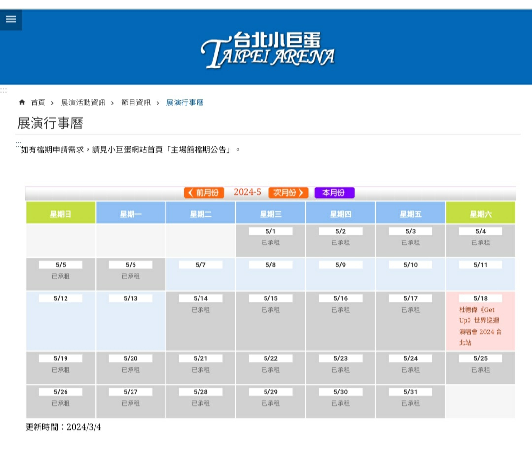 → candysky : 但看了一下小巨蛋3 4月的檔期都滿了,要到五月才勉 03/19 16:39