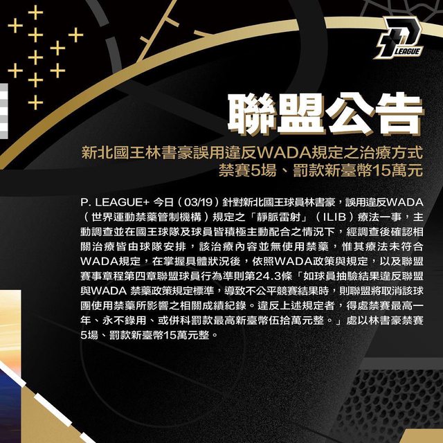 推 date0714 : 該治療內容並無使用禁藥,惟其療法未符合WADA規定。 03/19 20:01