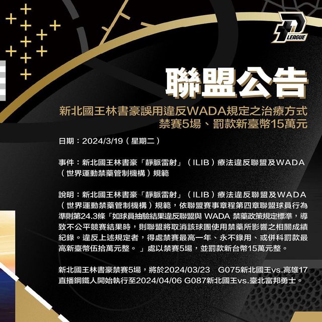推 Hsiuhsin : 樓下有篇有貼NBA禁藥也罰五場 03/19 20:05