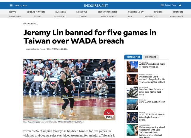 推 pounil : 前NBA球員林書豪在台灣用禁藥!!!!!!!!!!!! 03/21 14:31