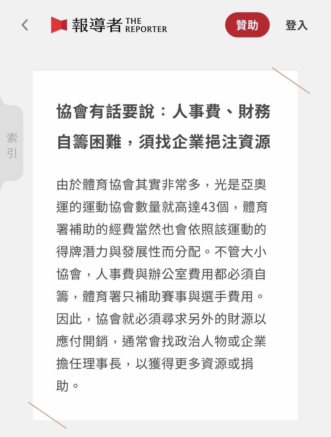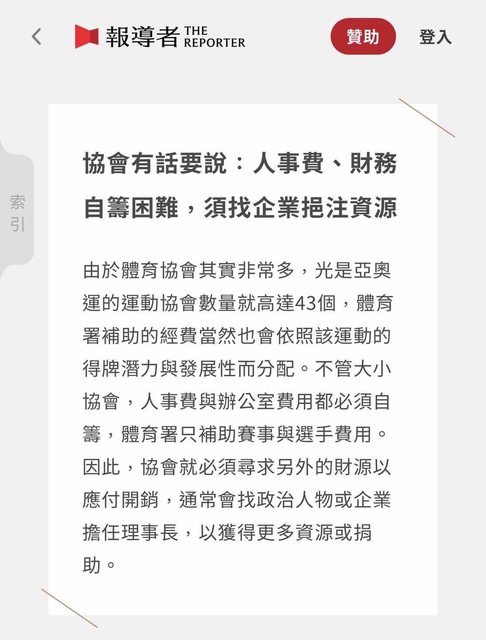 第二 政府給籃協的補助 是出自人民納稅錢