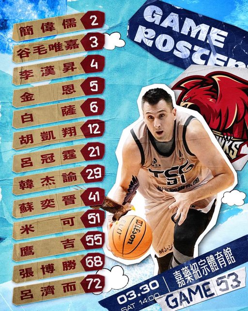 → kirarose : 武科跟鷹吉上場很猛 這場缺一了 03/30 13:15