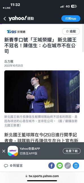 推 YqYq5566 : 身為新北人,強烈希望侯市長取消國王隊的新北冠名 04/02 14:51