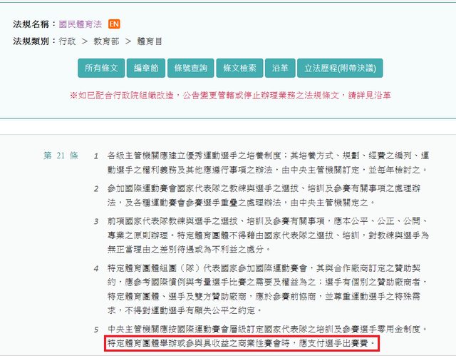 國體法2017年修法就新增第21條第5項規定了,選手們知道嗎