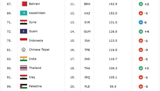 : 台灣日前在世界盃亞洲區資格賽慘敗給菲律賓後,近期排名下滑3名,排名第81,反觀關