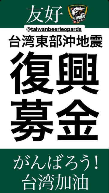 雲豹球團也很感謝Volters對台灣的情意相挺,更對來自熊本好朋友的關心很感動,期盼