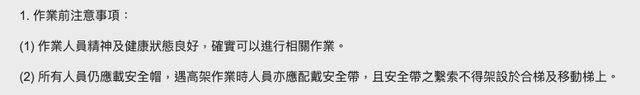 → ZIDENS : 當時有人討論到安全帽問題 好像跟作業高度有關 04/07 11:10