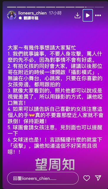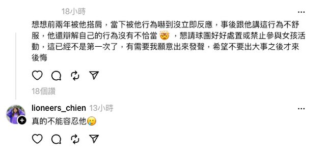 噓 yuanChang : 已經不止一次看到他這種行為,連女球迷都有被碰肩 04/09 12:39