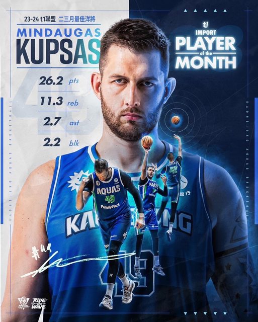 2-3月單月最佳外援|高雄全家海神【庫薩斯 Mindaugas Kupsas 】