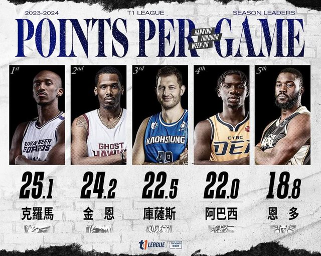 推 assbean : 雲豹洋將霸榜 得分王 籃板王 抄截王 04/10 16:07