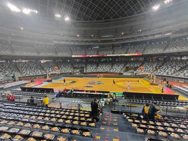其實在比賽前夕,球團也釋放出一段,在大巨蛋搭建籃球場的過程,以及在搭建前,對原