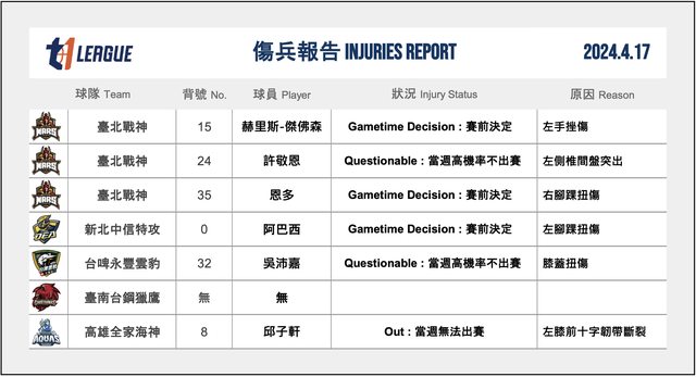 → Sunlin30 : 許敬恩跟吳沛嘉怎麼有辦法受傷.... 04/17 16:58