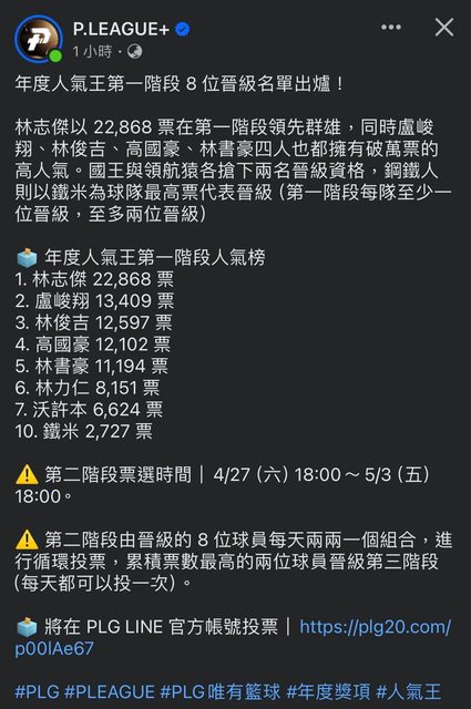 推 jackie36952 : 書豪剛來的時候 人氣有超過志傑? 04/27 14:35