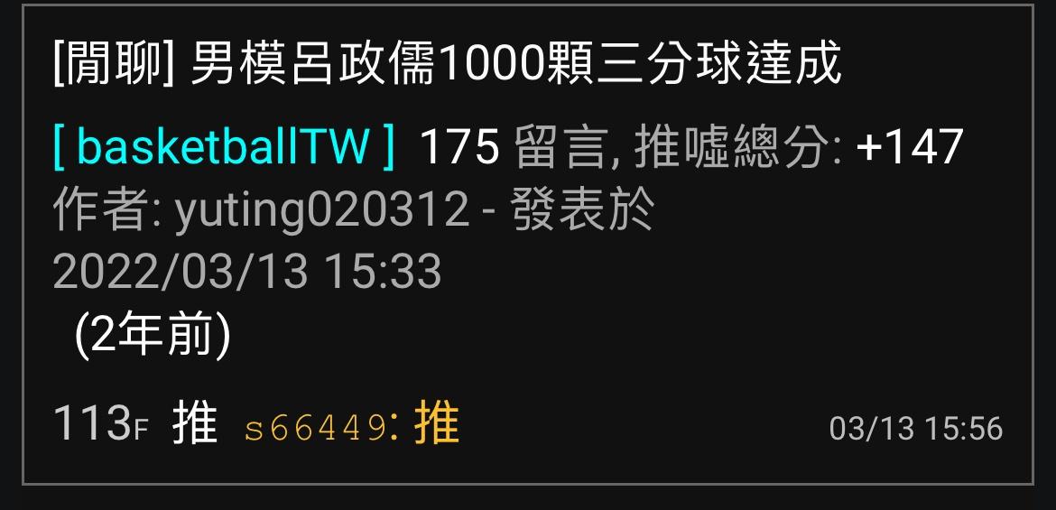 → linyyggtt : 結果在呂政儒SBL+P通算1000顆三分的文留言推,你覺 04/29 14:06