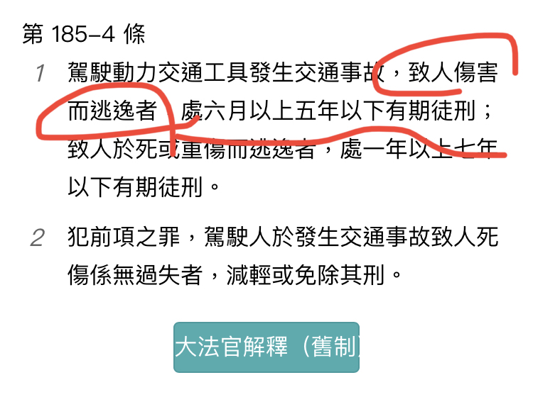 → sammy98 : 讓是一罪、傷害是一罪 剛好可以合併成「肇逃致傷害 08/16 13:18