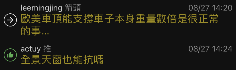 推 actuy : 全景天窗也能抗嗎 08/27 14:24