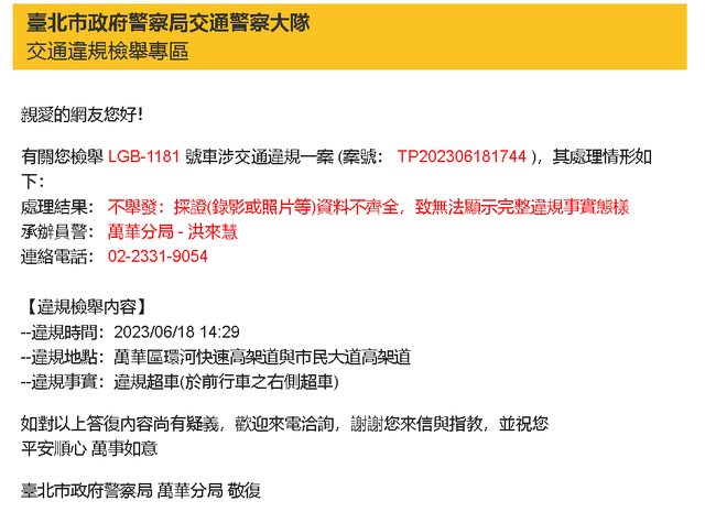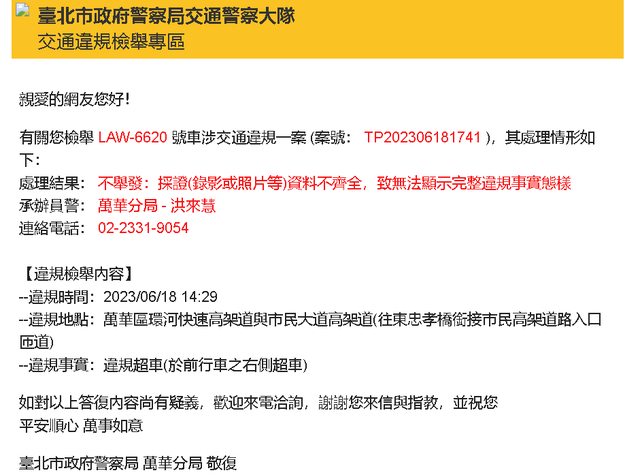 : 臺北市政府警察局萬華分局三次回覆,