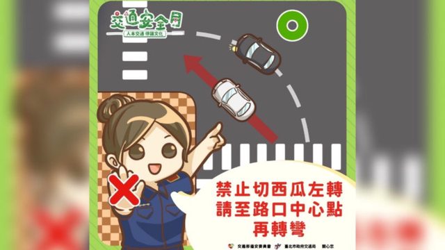 「禁止切西瓜左轉,請至路口中心點再轉彎」,乍看之下這確實是許多駕駛缺乏的