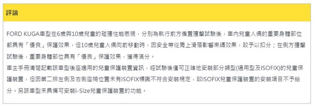 推 pmes9866 : Kuga兒童撞測都是優 本田10歲頸部是「差 」 09/26 11:29