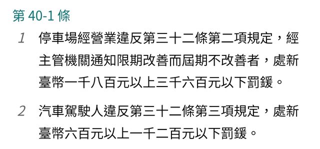 → TobyW : #40-2則是說如果車主違反#32-3違規停在專用車位, 10/03 21:33