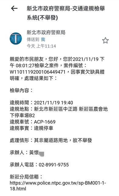 噓 VVVV55555 : 不是找警察局,是停管處開罰的,請找停管處,網路 10/03 23:34