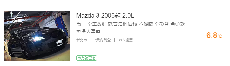 推 x284yk6cjo5 : 舊款馬3真的一堆低端在開 10/05 19:19