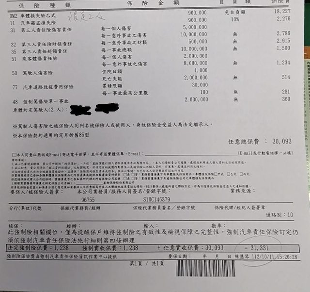 推 MuskaJL : 對自己開車有自信, 保丙 加 超額, 跟代步險就很 10/16 14:31